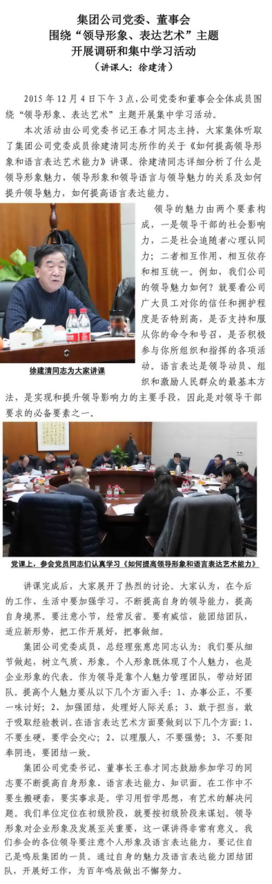 集團(tuán)公司黨委、董事會(huì)圍繞“領(lǐng)導(dǎo)形象、表達(dá)藝術(shù)”主題開展調(diào)研和集中學(xué)習(xí)活動(dòng)