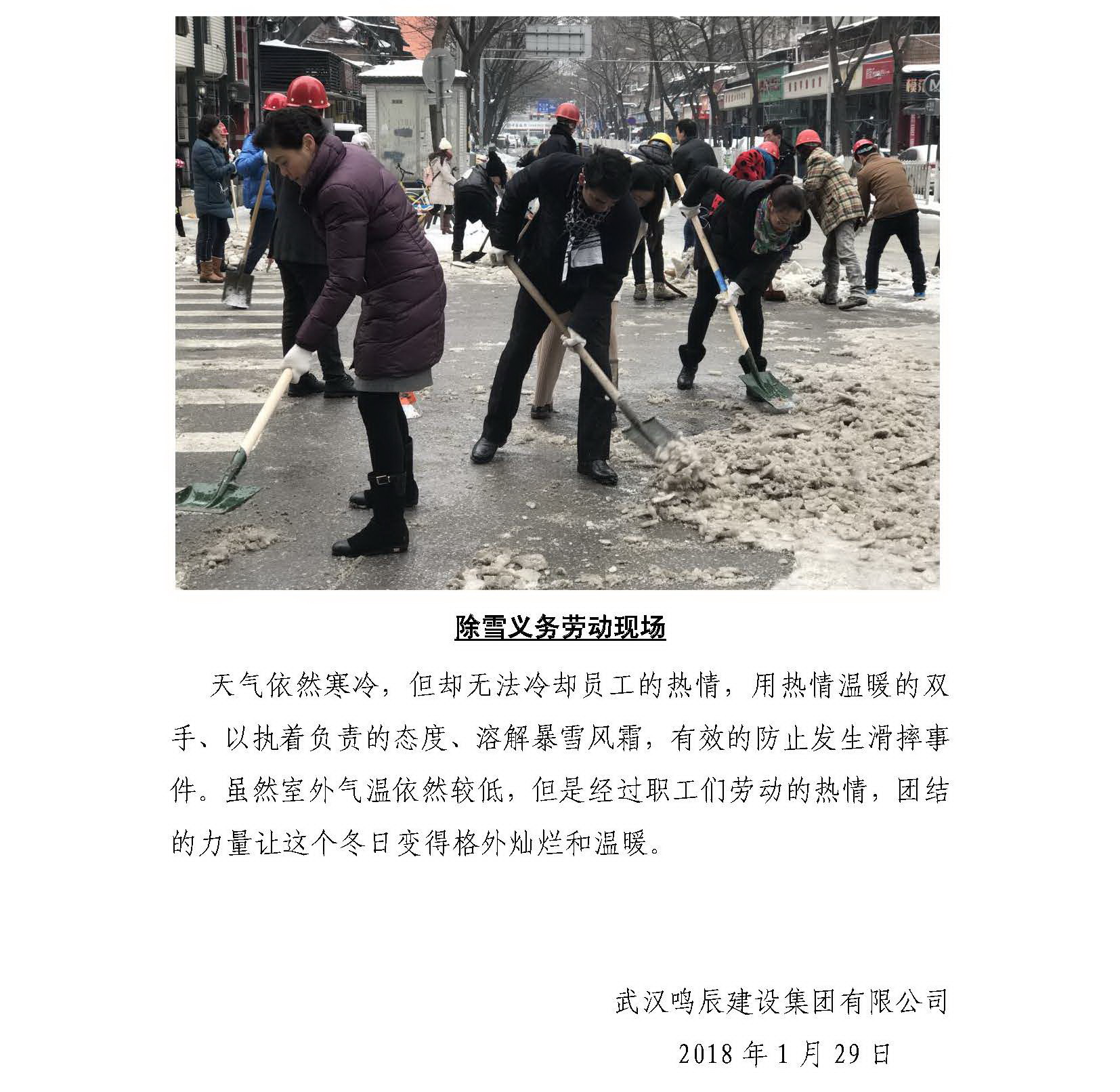 戰(zhàn)風(fēng)雪,保暢通 ——記武漢鳴辰建設(shè)集團(tuán)有限公司除雪義務(wù)勞動(dòng)