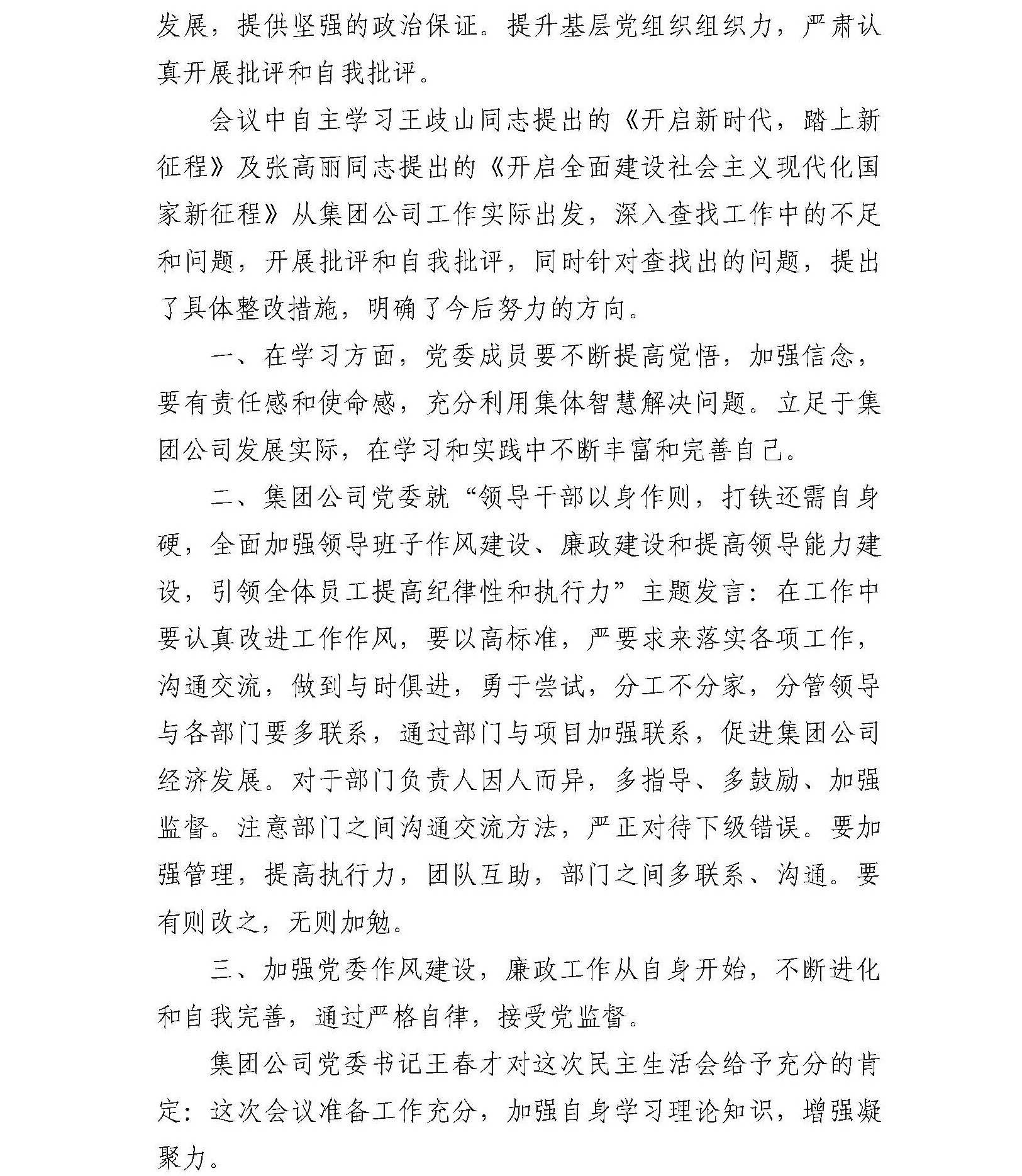 集團(tuán)公司黨委召開 “領(lǐng)導(dǎo)干部以身作則,打鐵還需自身硬” 為主題的民主生活會(huì)