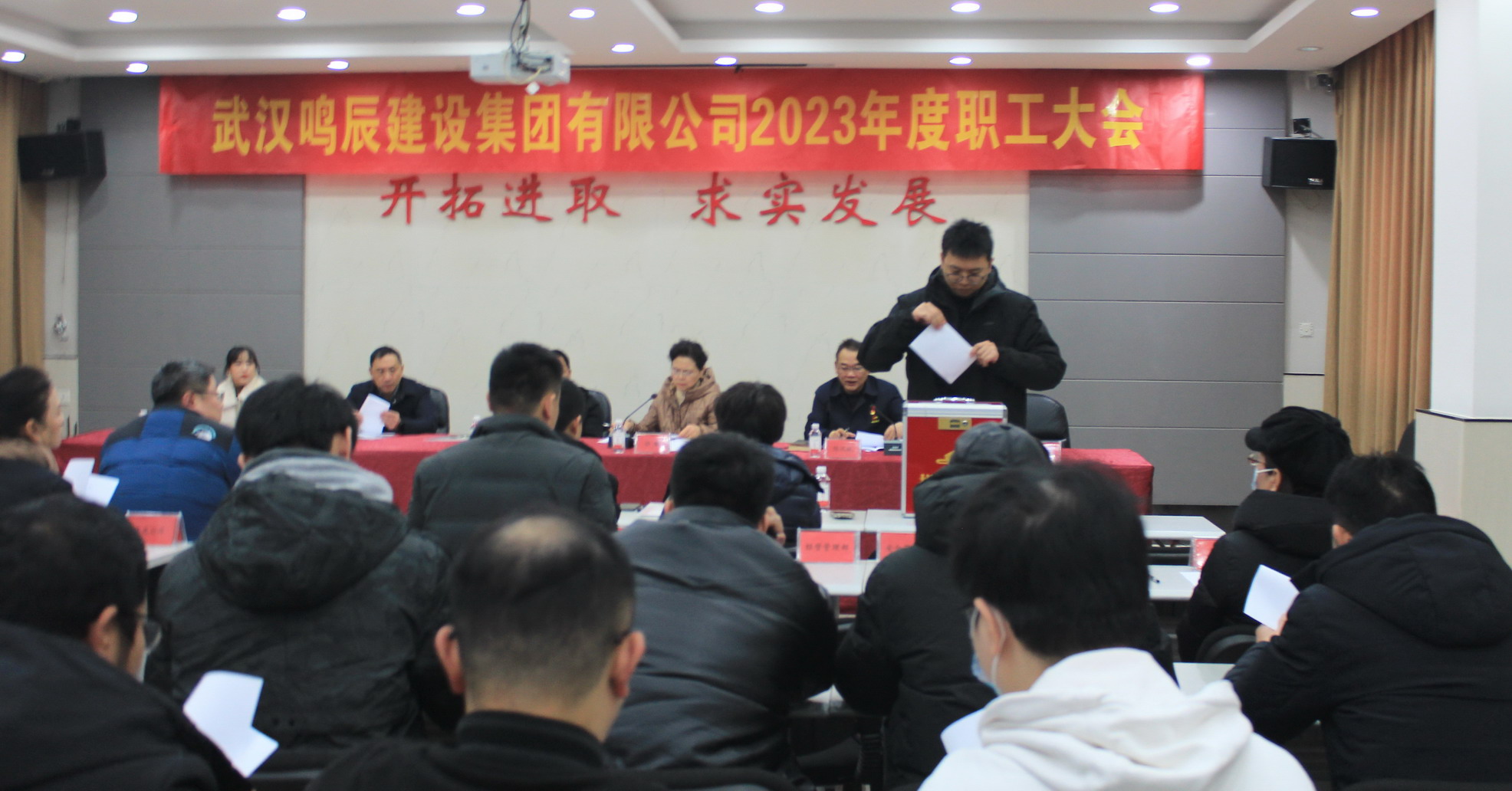 2023年2月17日上午,武漢鳴辰建設集團有限公司2023年度職工大會在公司一樓會議室勝利召開。集團公司黨委書記、董事長王春才同志,黨委委員、總經理張惠忠同志及黨委領導班子全體成員參加會議。會議邀請江岸區(qū)總工會副主席賴主席、勞動街街道工會主席方主席參加。集團公司工會主席陳漢林同志主持會議。集團公司職工參會并選舉殷武同志擔任集團公司職工董事。