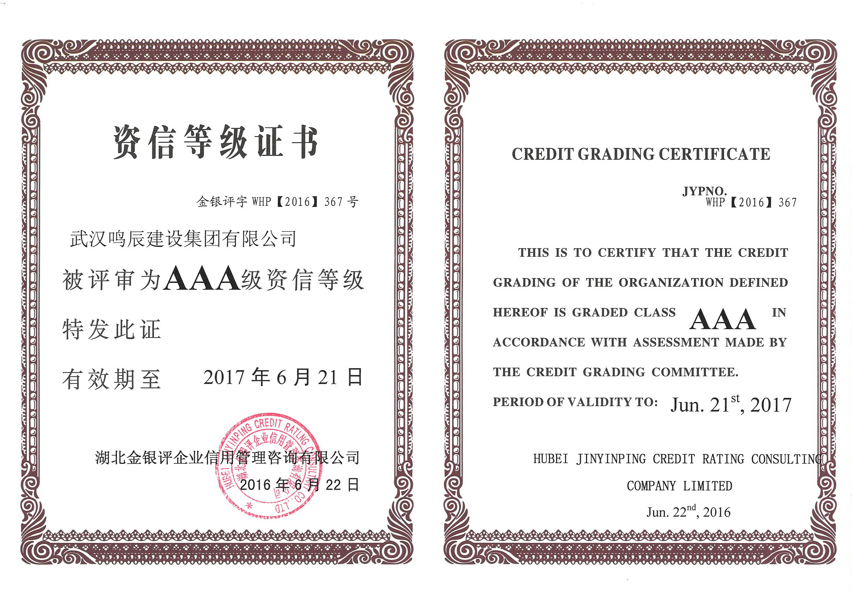 AAA資信等級證書