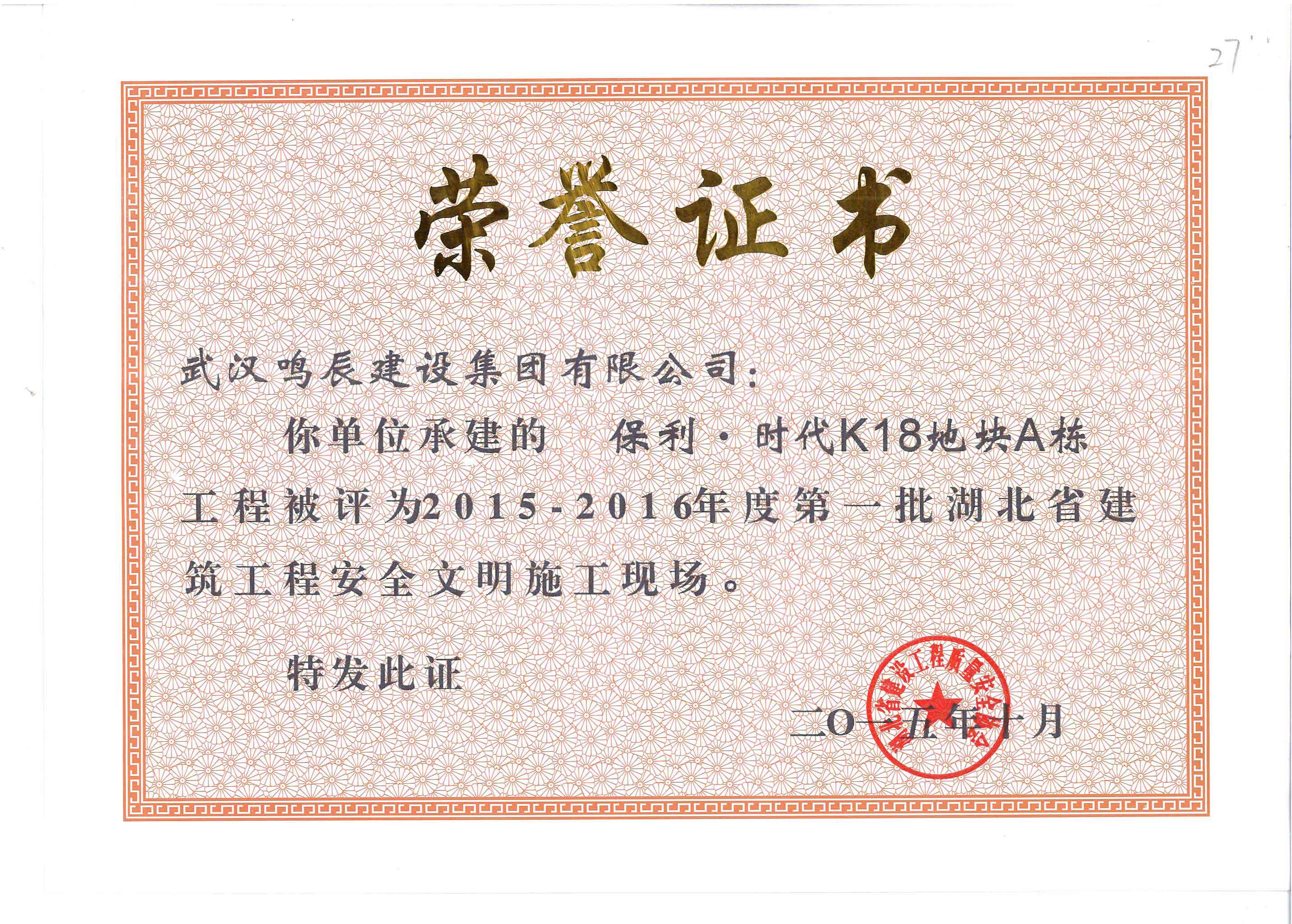 2015-2016年度第一批湖北省建筑工程安全文明施工現(xiàn)場(chǎng)