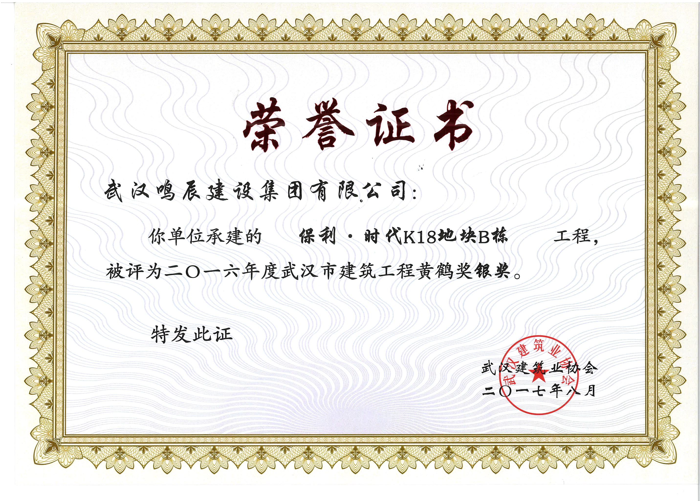 保利時(shí)代K18-B棟工程獲得黃鶴杯銀獎(jiǎng)