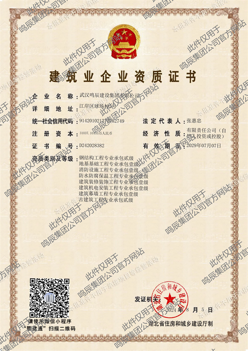鳴辰集團(tuán)作為一家年產(chǎn)值20億元,年均創(chuàng)稅近億元的集團(tuán)公司,擁有房屋建筑施工總承包壹級資質(zhì),下屬開發(fā)公司、市政公司、勞務(wù)公司、物業(yè)公司等20多家經(jīng)營機(jī)構(gòu)。經(jīng)營范圍覆蓋:建筑工程施工總承包壹級;消防設(shè)施工程專業(yè)承包壹級;地基基礎(chǔ)工程專業(yè)承包壹級;建筑裝修裝飾工程專業(yè)承包壹級;防水防腐保溫工程專業(yè)承包壹級;建筑機(jī)電安裝工程專業(yè)承包壹級;建筑幕墻工程專業(yè)承包壹級;鋼結(jié)構(gòu)工程專業(yè)承包貳級;古建筑工程專業(yè)承包貳級;混泥土銷售;門窗加工及安裝;工程造價咨詢、商務(wù)信息咨詢。集團(tuán)公司致力于綠色施工、智能建造,始終以“匠心精造”精神服務(wù)社會高質(zhì)量發(fā)展。
