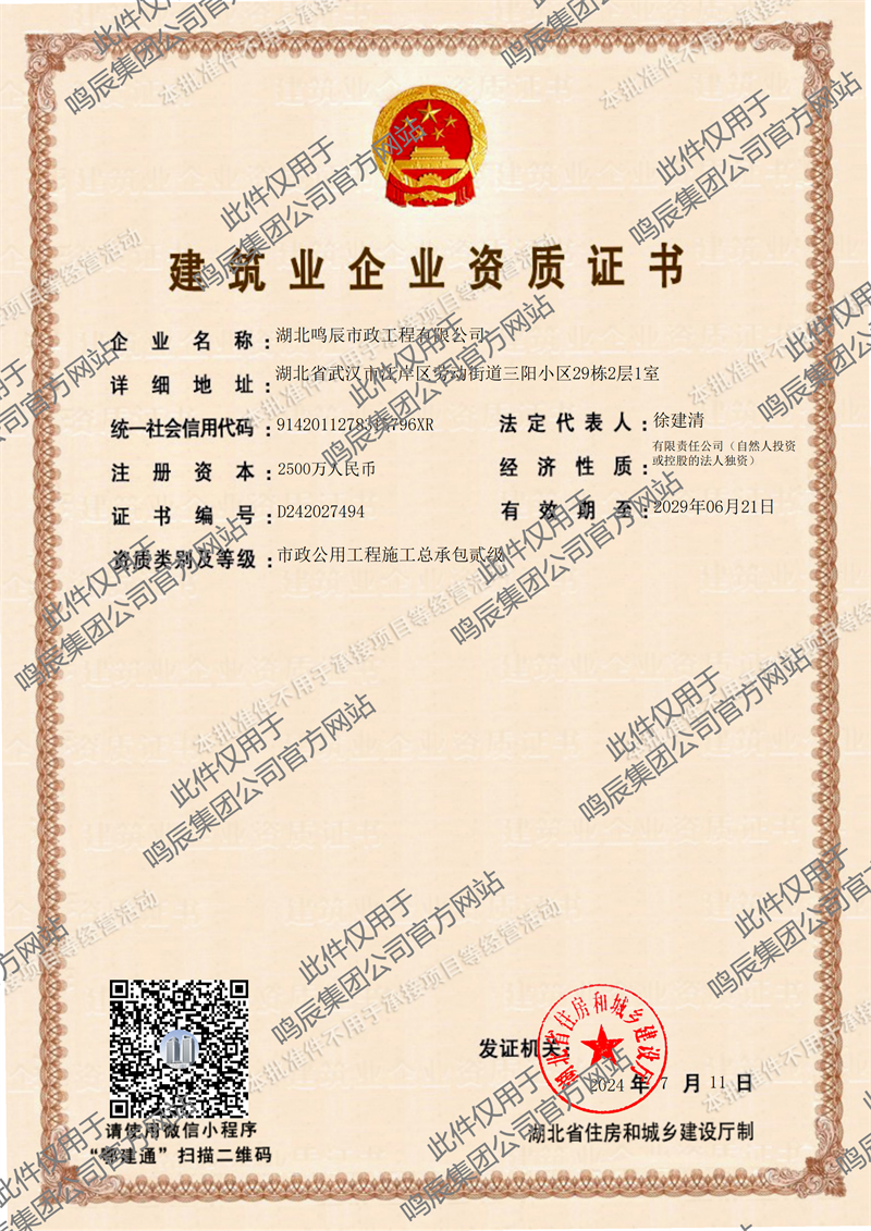 湖北鳴辰市政工程有限公司擁有齊全的市政施工機械設備,50余名中級以上職稱的施工技術人員,技術力量雄厚,能夠承接各種大中型道路和市政施工的施工任務。現(xiàn)為武漢市市政協(xié)會會員,已通過ISO質量、安全、環(huán)境管理體系認證,先后獲得市先進單位和守合同重信用企業(yè),年施工能力20000萬元,工程合格率100%,優(yōu)良率95%,為武漢市市政道路、排水、園林綠化、景觀工程、供熱、休閑等工程貢獻了力量,受到政府部門和業(yè)主單位的好評,業(yè)務主要承接范圍為城市道路(新建、改建)工程、給排水工程、橋梁工程、綠化景觀工程、公共廣場等工程。近年來公司承接的代表性工程項目主要有:漢口歷史風貌區(qū)特色街巷建設項目青島路道路整治及花街建設工程、江岸區(qū)瑞祥路道路工程、三金潭立交東側公共通道(一期)道排工程、青菱西路(白沙三路-白沙五路)道路工程、園藝二路道路工程、2020年市級重點改造配套工程(武漢市青少年宮足球場建設項目)、隨州白云大道第五標段、三金潭小路及二環(huán)線橋下節(jié)點周邊整治工程總承包、澳門金角片城市更新配套建設項目(一期)設計施工總承包等項目。