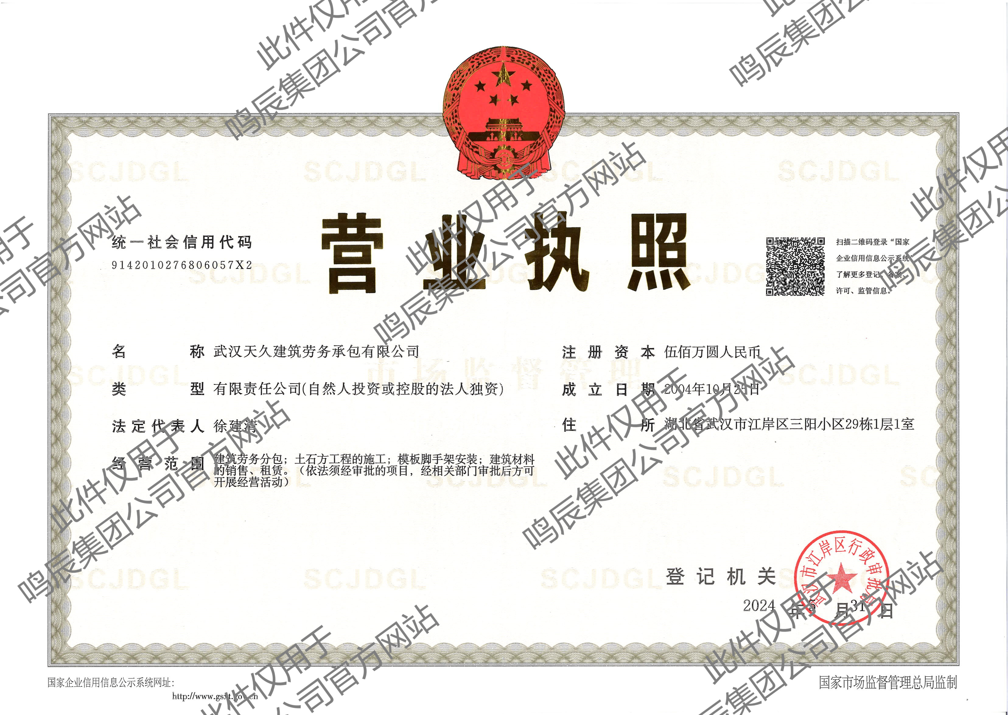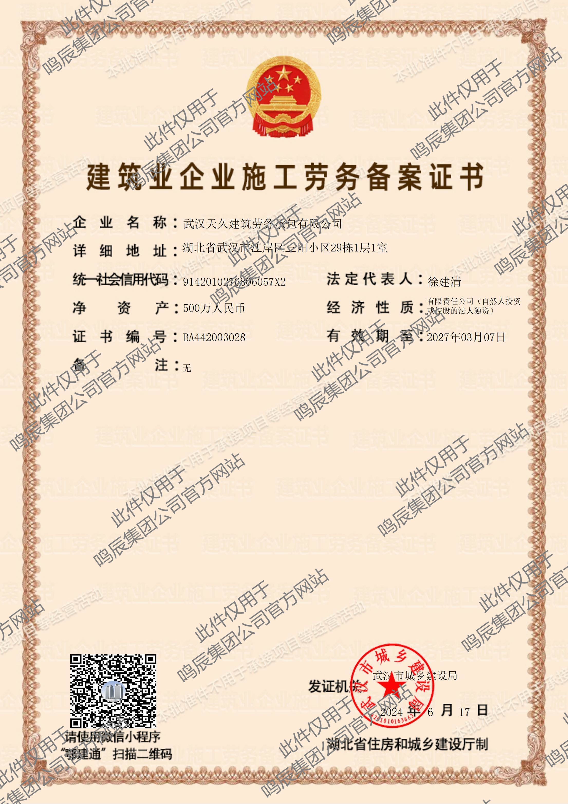 武漢天久建筑勞務承包有限公司,具備施工勞務資質(zhì)與模板腳手架專業(yè)資質(zhì),自2019年起全面實施建筑勞務實名制管理。我們不斷深化信息化改革,優(yōu)化勞務管理流程,確保每一項工作都達到高標準、嚴要求。