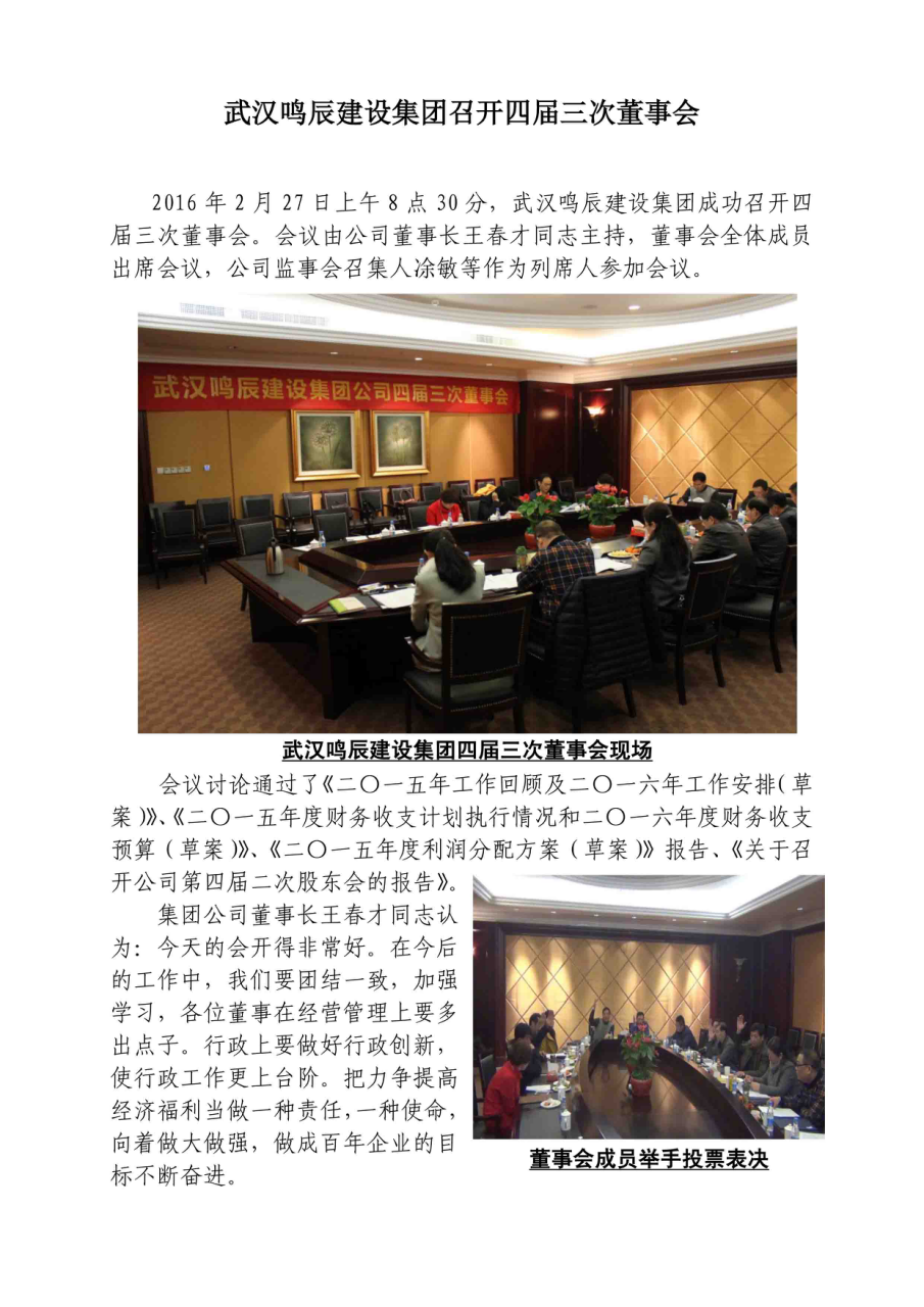 武漢鳴辰建設(shè)集團(tuán)召開四屆三次董事會