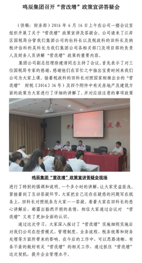鳴辰集團(tuán)召開“營改增”政策宣講答疑會