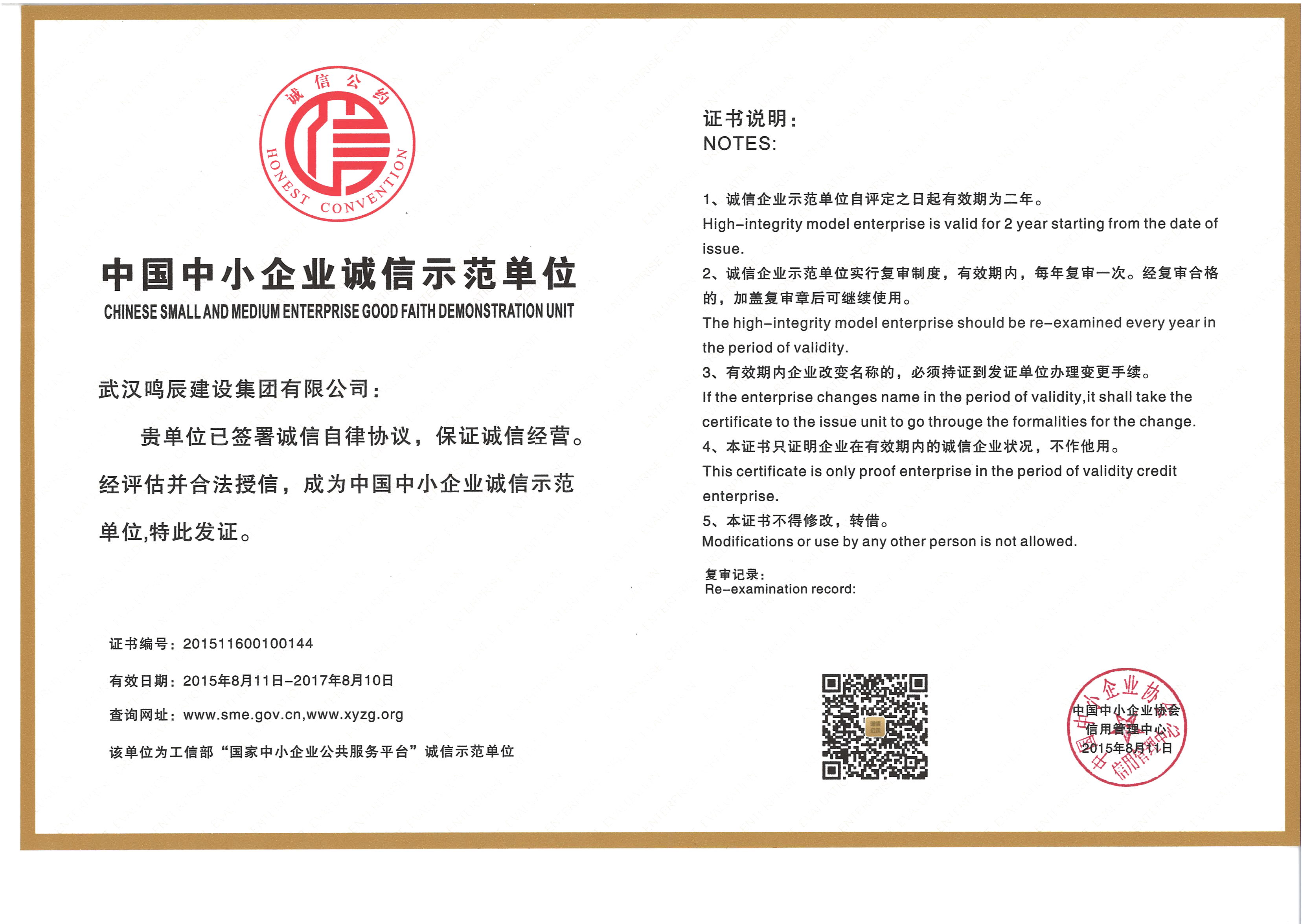 中國(guó)中小企業(yè)誠(chéng)信示范單位