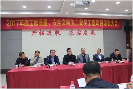 集團(tuán)公司副總經(jīng)理胡萍同志宣講了《關(guān)于表彰2017年度獲獎(jiǎng)工程項(xiàng)目的決定》決定對(duì)集團(tuán)公司2017年度榮獲的7個(gè)工程質(zhì)量及5個(gè)安全文明施工工程項(xiàng)目進(jìn)行了表彰,并由武漢市建筑業(yè)協(xié)會(huì)副會(huì)長(zhǎng)兼秘書長(zhǎng)李淼磊、中杰投資公司董事長(zhǎng)池建國(guó)、勞動(dòng)街辦事處黃主任及鳴辰集團(tuán)公司董事長(zhǎng)王春才為保利時(shí)代K18地塊A、B棟及地下室工程、高雄壹號(hào)工程、幸福灣二期工程、保利清能西海岸北區(qū)五期工程、祥運(yùn)鞋業(yè)生產(chǎn)車間工程等受表彰的項(xiàng)目進(jìn)行了頒獎(jiǎng)。
