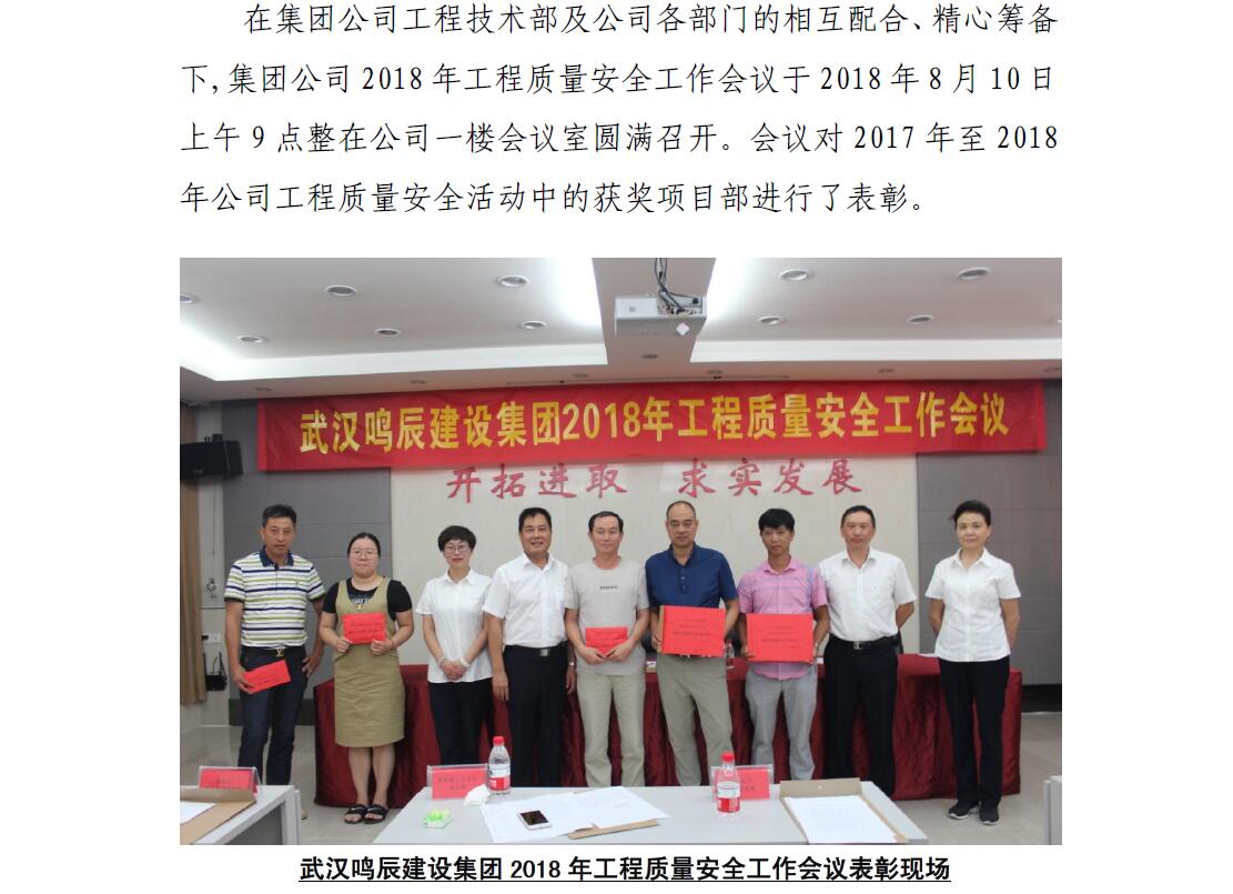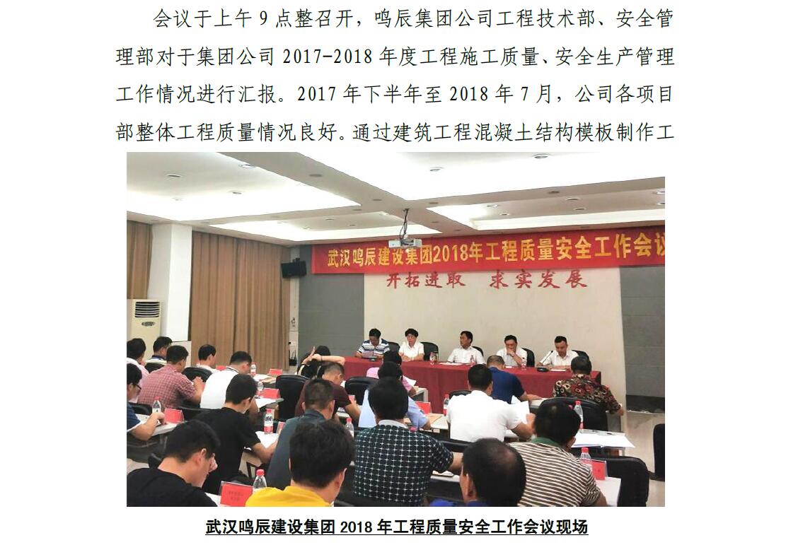 武漢鳴辰建設(shè)集團(tuán)有限公司 召開2018年工程質(zhì)量安全工作會(huì)議