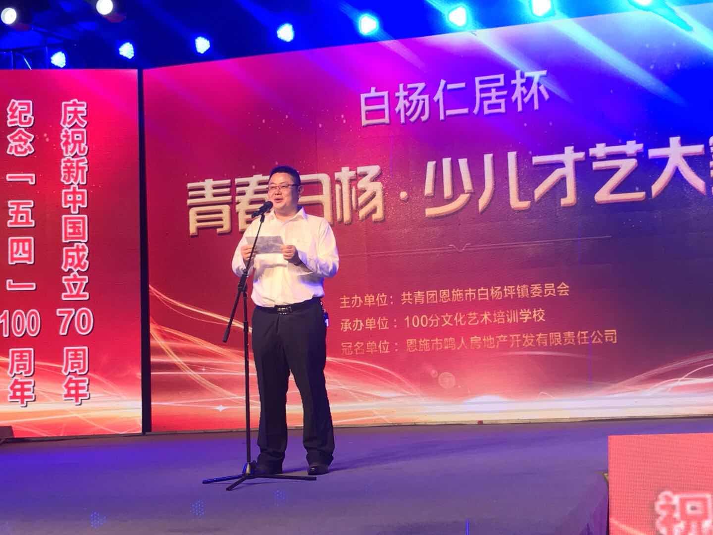 “青春白楊?少兒才藝大賽”決賽在武漢鳴辰建設(shè)集團(tuán)旗下恩施市鳴人房地產(chǎn)開(kāi)發(fā)有限責(zé)任公司大力支持下取得了圓滿成功。通過(guò)活動(dòng)的開(kāi)展使周邊老百姓親自感受和體會(huì)到開(kāi)發(fā)公司白楊仁居樓盤(pán)的文化品位和服務(wù)檔次。