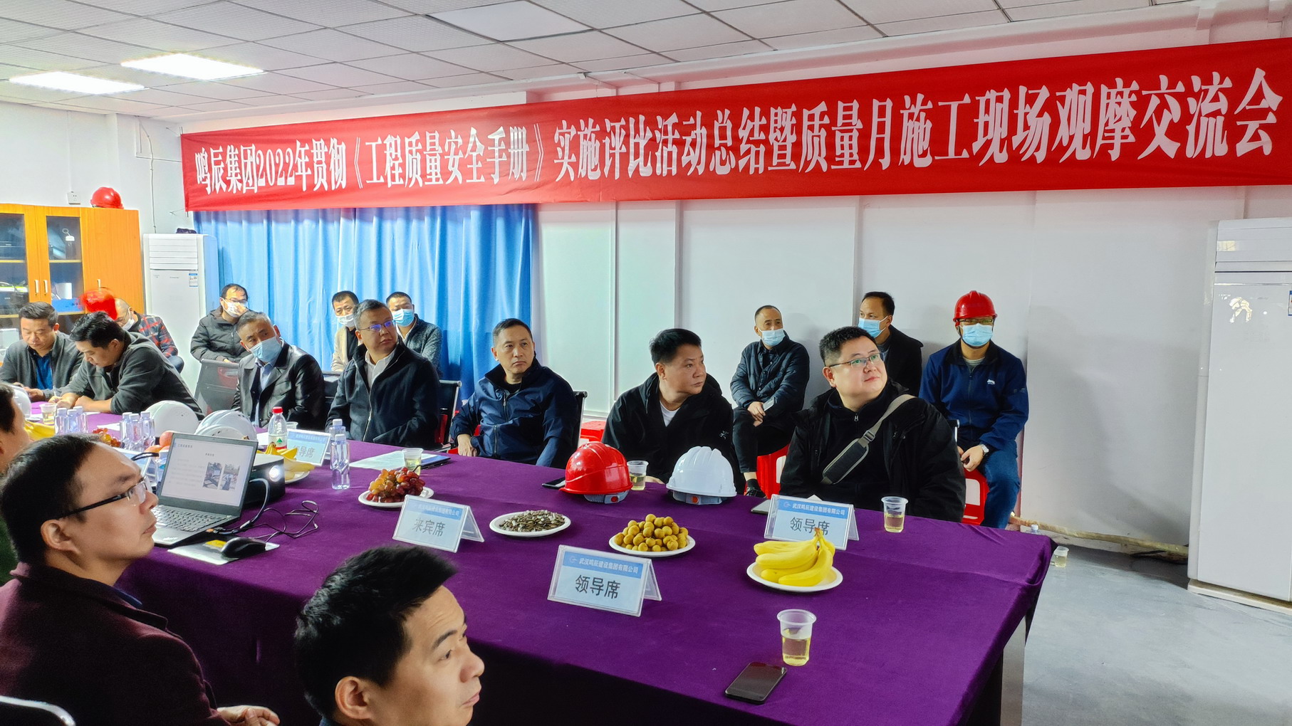 觀摩會議由集團(tuán)公司工程技術(shù)部負(fù)責(zé)人包五喜主持。觀摩會上,項(xiàng)目部管理人員對項(xiàng)目管理情況進(jìn)行了匯報:長航檔案館項(xiàng)目部深入貫徹《工程質(zhì)量安全手冊》(以下簡稱《手冊》),在品質(zhì)提升中彰顯鳴辰集團(tuán)工匠精神,從管理制度、人員配備、現(xiàn)場管理及過程控制四個方面著手,全面推進(jìn)標(biāo)準(zhǔn)化管理。