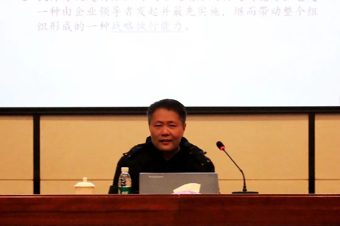 馮震教授授課領(lǐng)導執(zhí)行力授課。執(zhí)行力就是將組織的戰(zhàn)略規(guī)劃落到實處的能力。它是一種由企業(yè)領(lǐng)導者發(fā)起并最先實施,繼而帶動整個組織形成的一種戰(zhàn)略執(zhí)行能力。馮教授結(jié)合“失街亭”的故事,告訴我們執(zhí)行力的重要性?!笆Ы滞ぁ钡氖〔皇菓?zhàn)略的問題,而是戰(zhàn)略執(zhí)行的問題。我們要解決好執(zhí)行力中“人”的問題,增強組織內(nèi)的目標認同度,增加有效溝通,做好有效控制;要處理好執(zhí)行力中運行的問題,做好角色定位、用制度管人、做到定量評價。我們要通過提升執(zhí)行力,增強企業(yè)的競爭力。