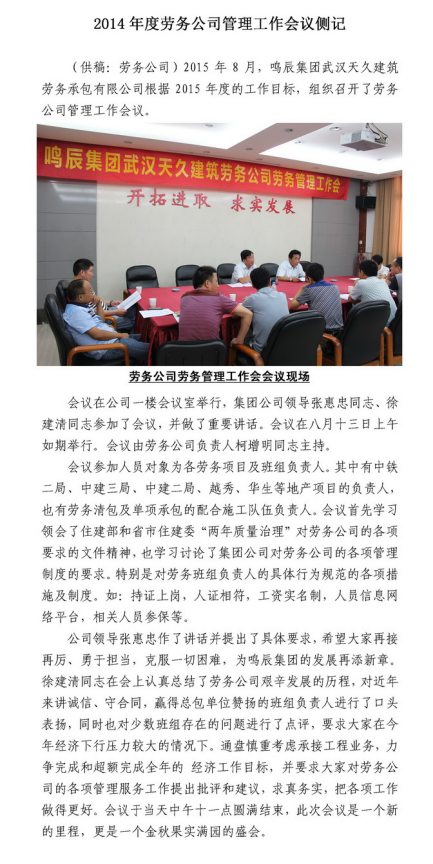 2014年度勞務(wù)公司管理工作會(huì)議側(cè)記